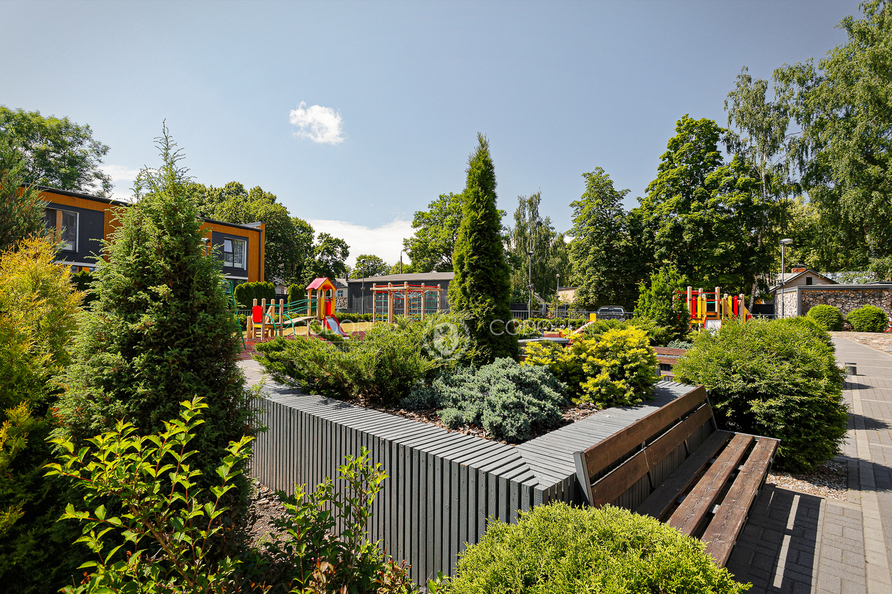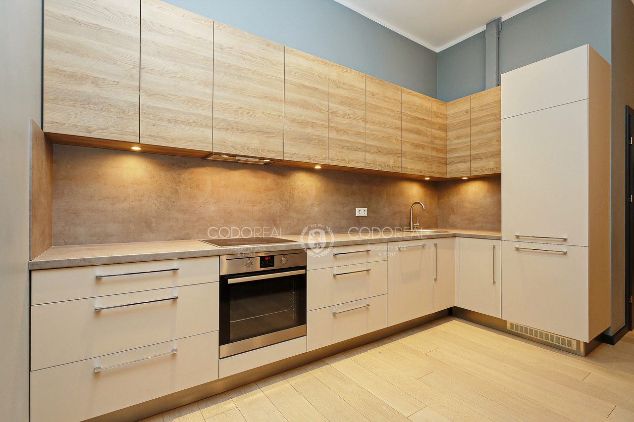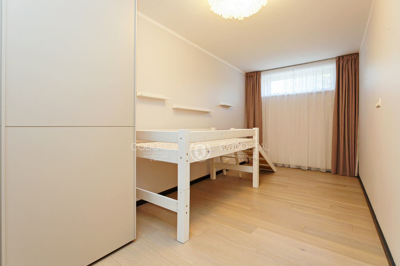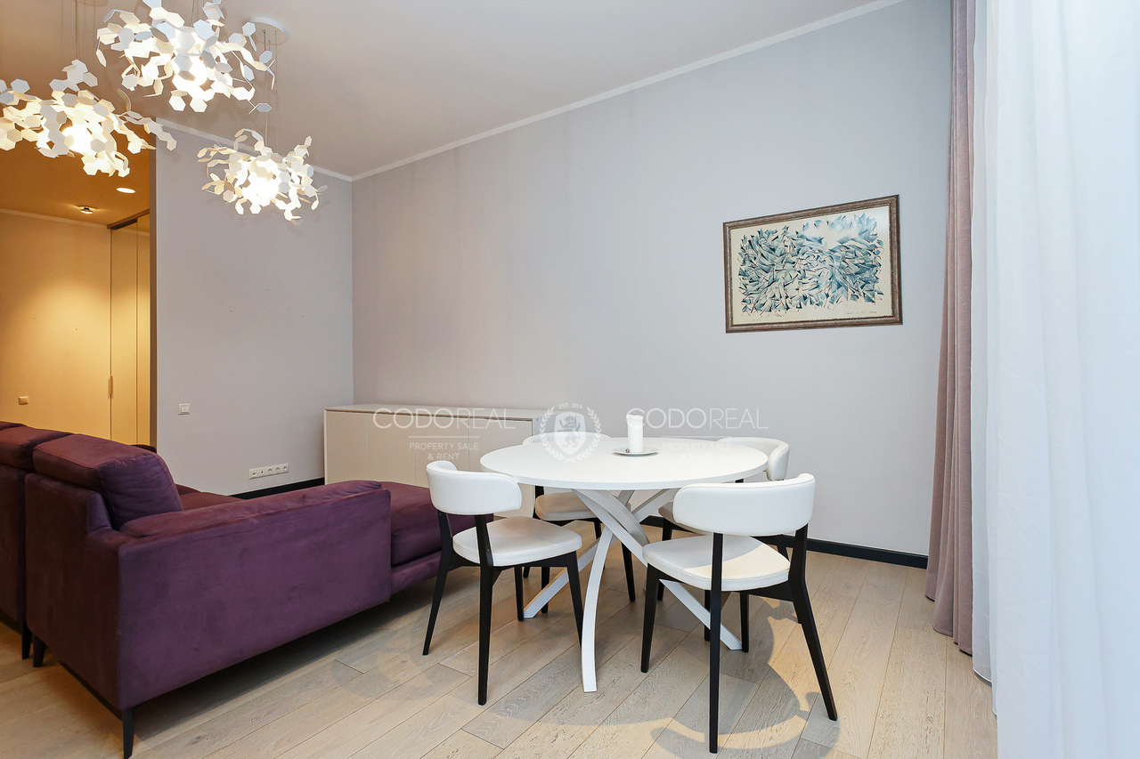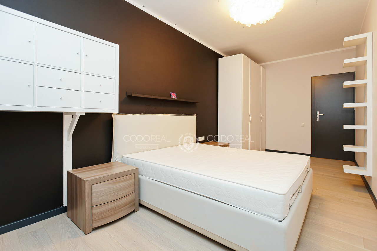 We offer to rent a 3-room apartment in Agenskalns, in the residential complex "Kalnciems Quarter Residences". The apartment is located in a separate one-storey building, with a private entrance and a small outdoor terrace. What makes the apartment special is the interior and layout created by the designer, with his vision of city life. The price will include one surface parking space.