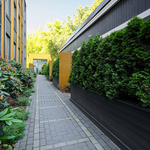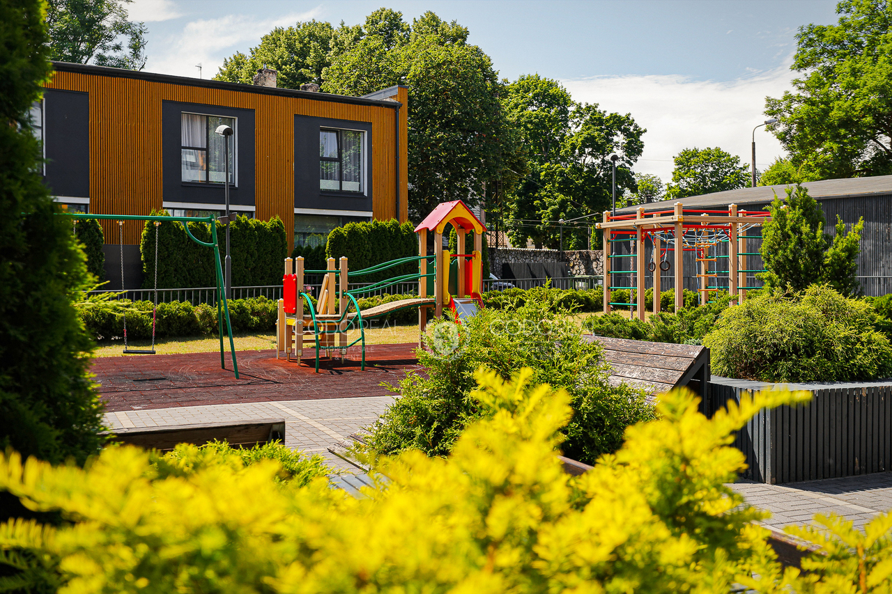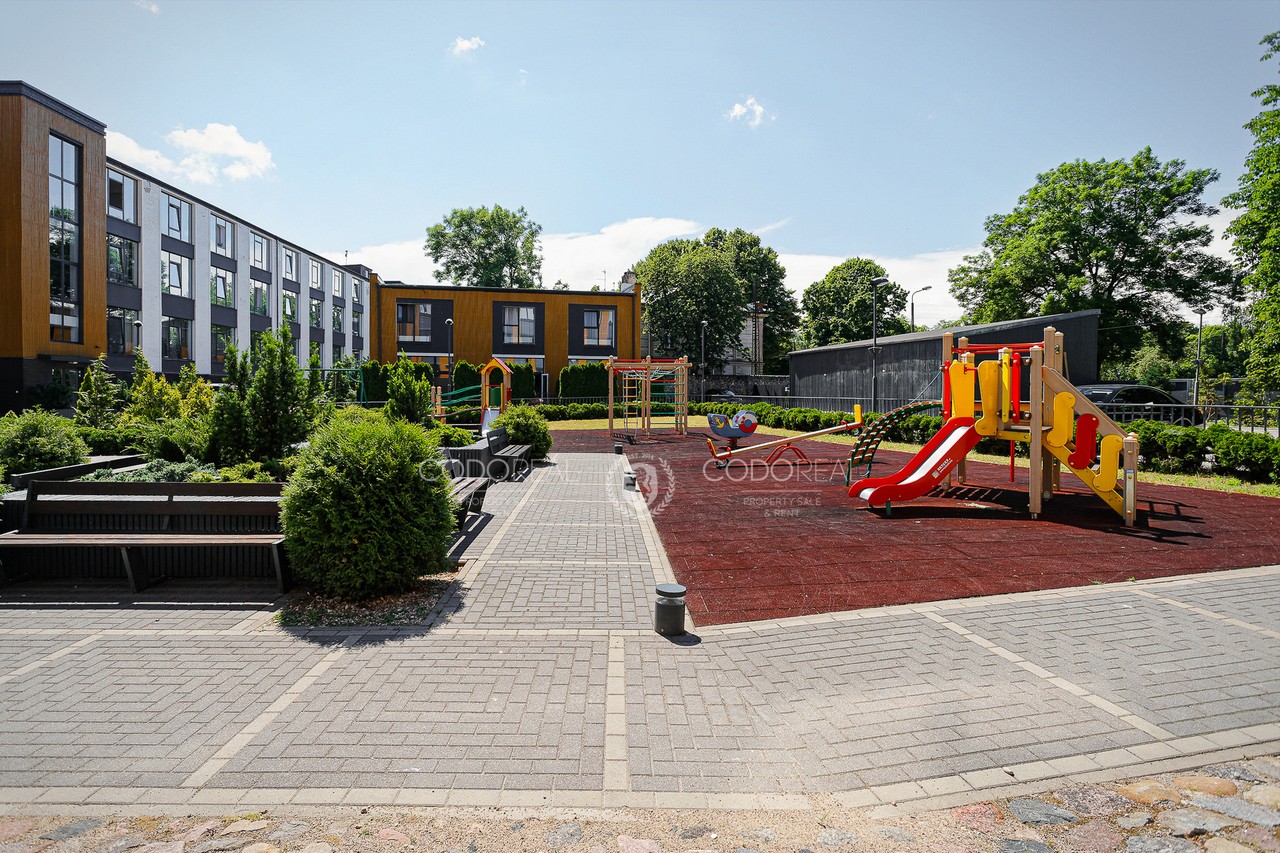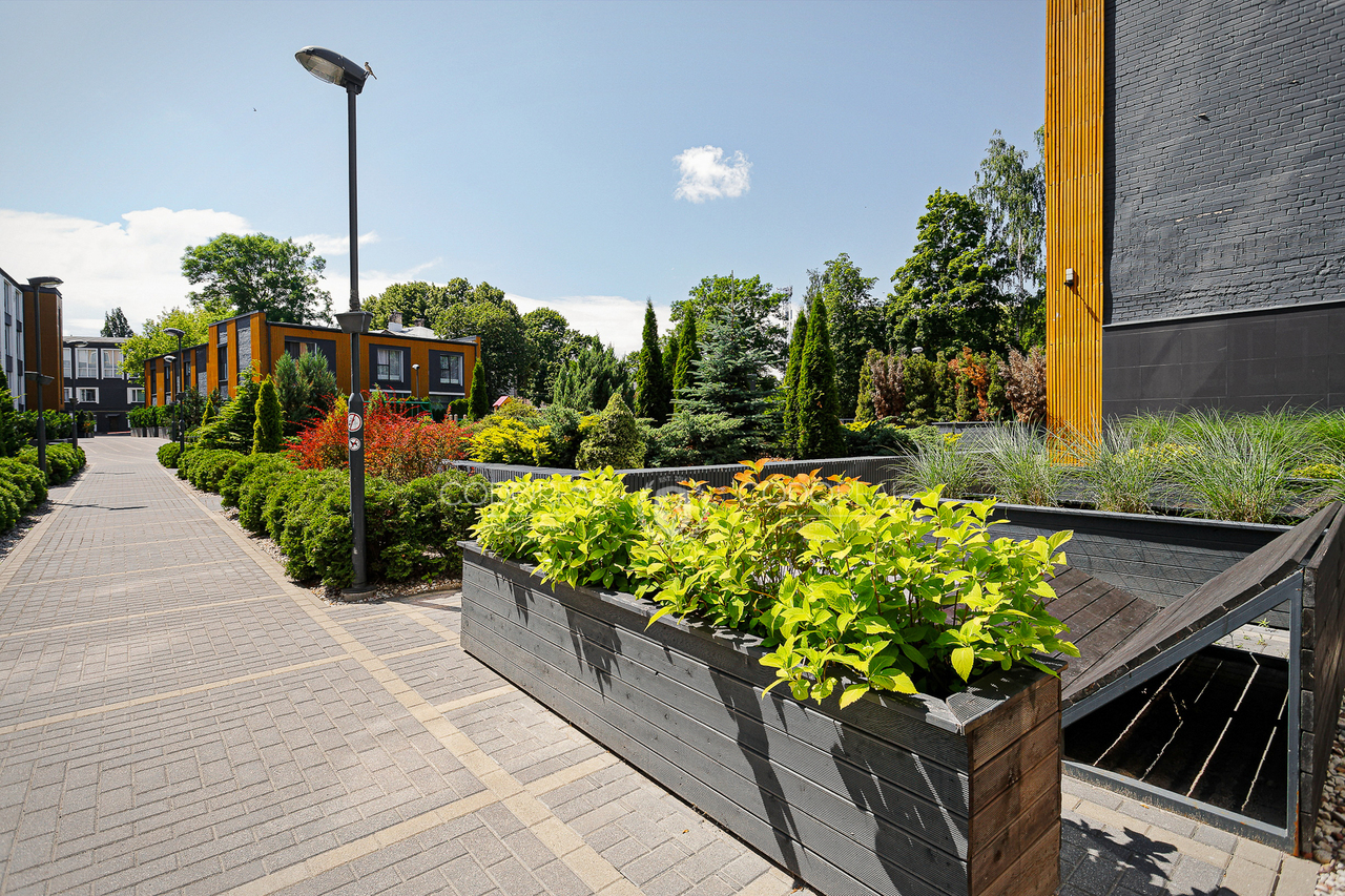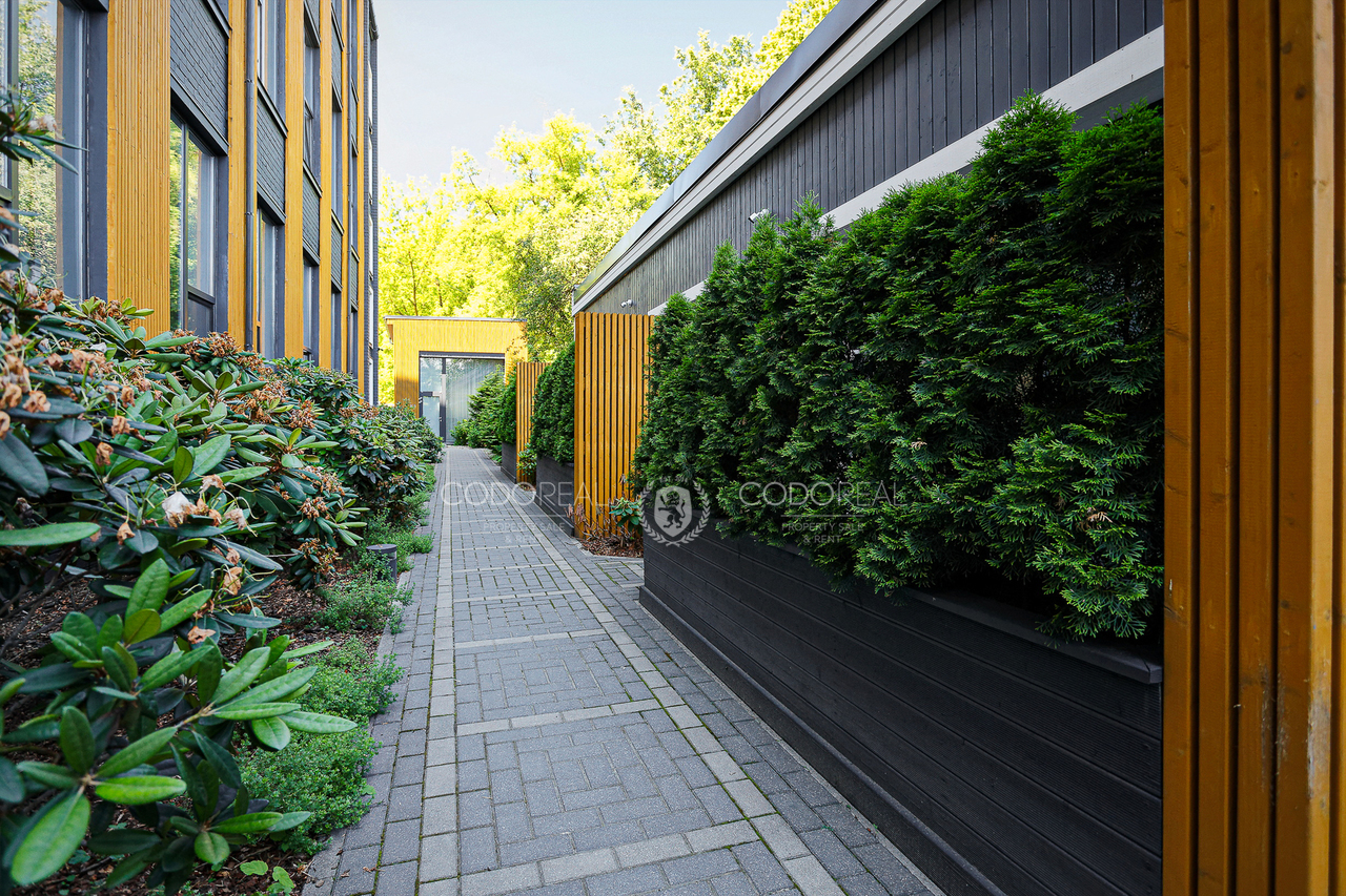 The territory of the backyard is landscaped and green, convenient for both car owners and cyclists and pedestrians. There are beautiful green areas and a children’s playground in the courtyard, which is surrounded by a fence, so it can only be accessed by residents of the building, video surveillance cameras are installed in the area.