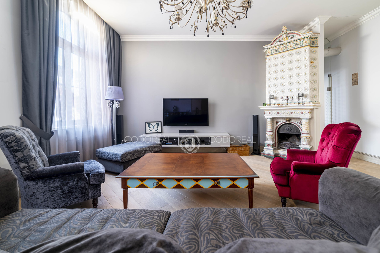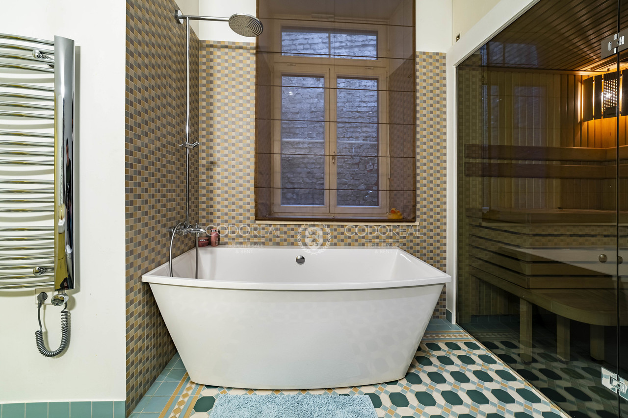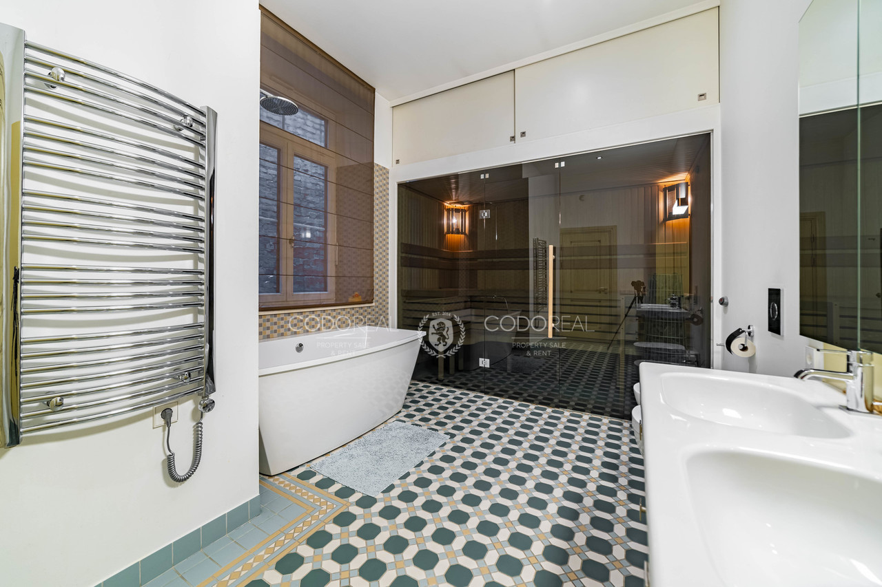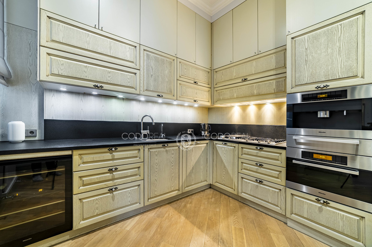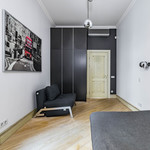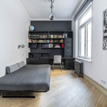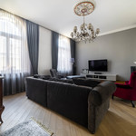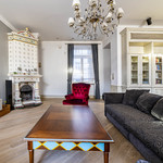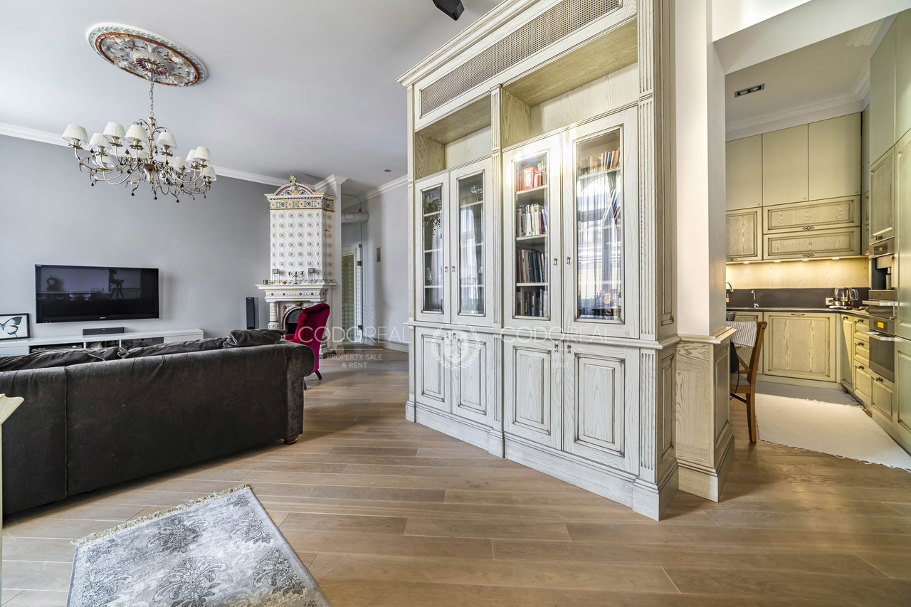 The apartment is fully furnished and equipped, high-quality furniture and household appliances, built-in wardrobes, designer interior, located on the third floor of a renovated building. The built-in recuperation system, individual gas heating, air conditioners, separate storage and utility room will add to the comfort of life.