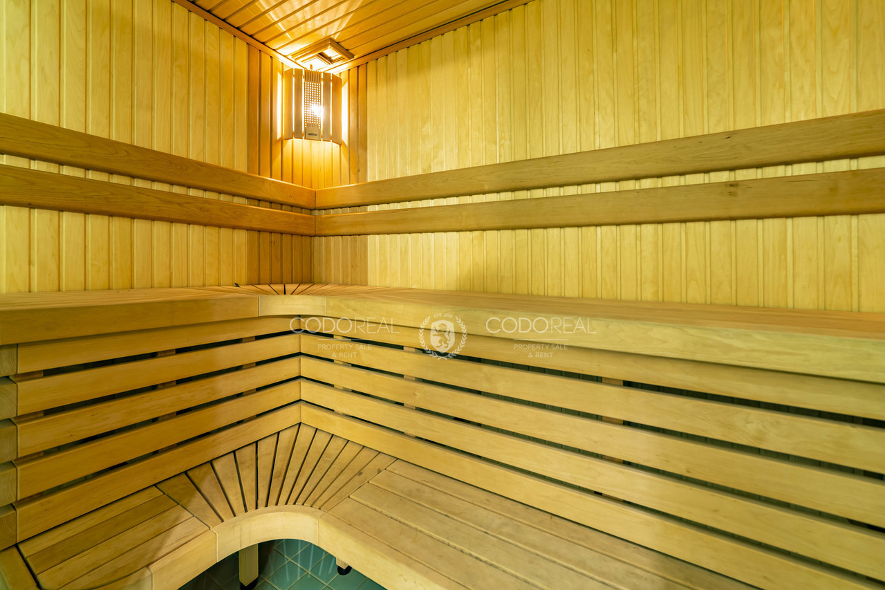 Comfortable and well-thought-out layout - spacious living room with a beautiful, renovated fireplace, separate kitchen area, 3 bedrooms with built-in wardrobes, 2 bathrooms. The largest bathroom has a sauna.