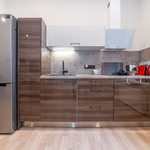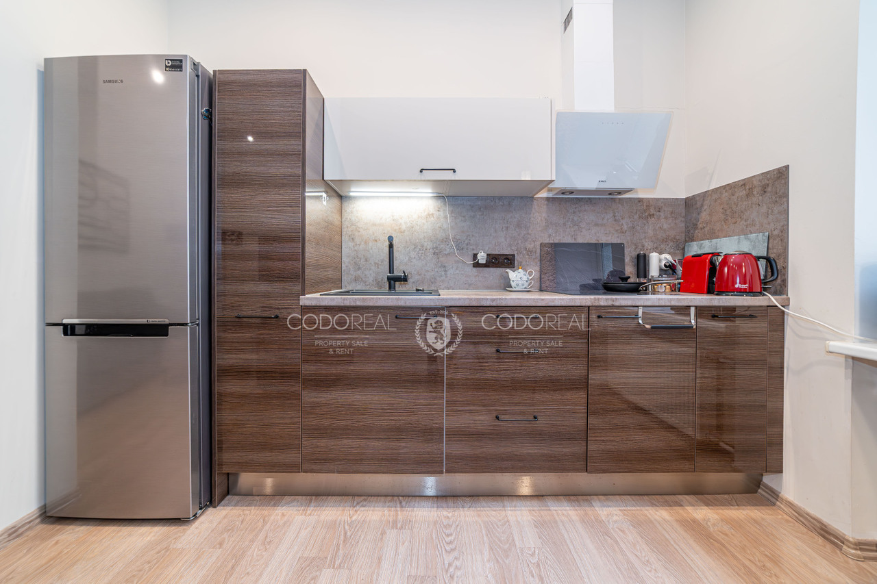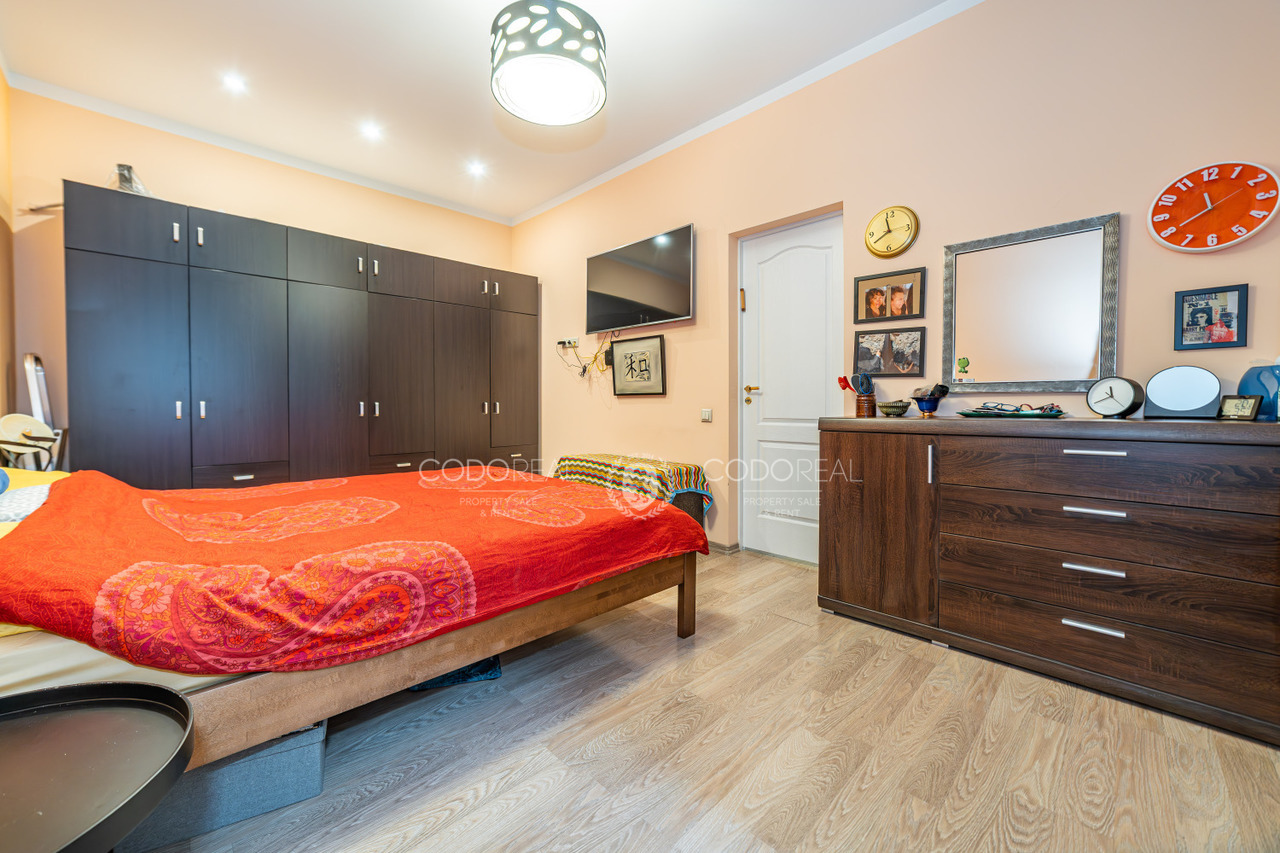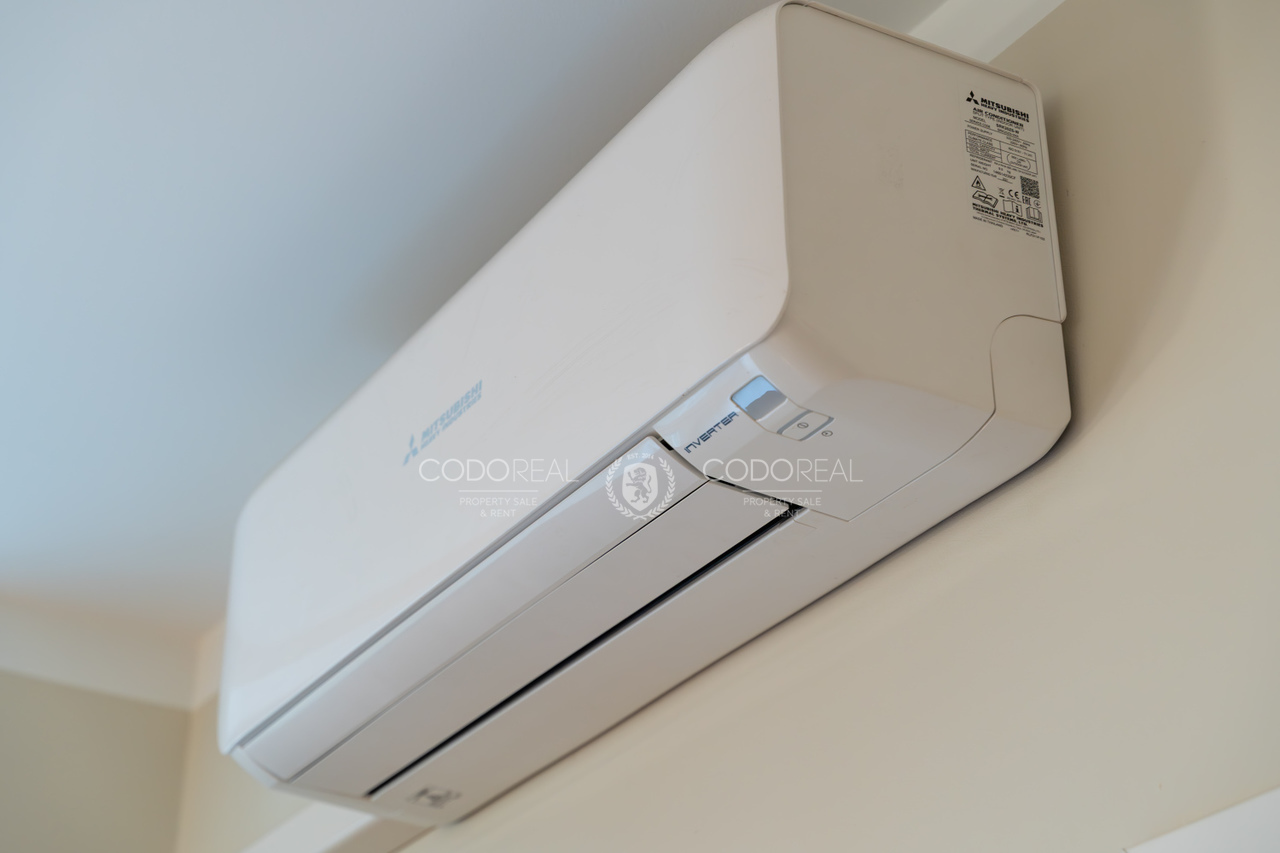 Aprīkojums: 3 istabas (2 izolētas). Virtuve aprīkota ar ledusskapi, elektrisko plīti un gaisa nosūcēju. Atsevišķs sanmezgls. Duša vannasistabā. Uzstādīts kondicionieris. Karstais ūdens - boileris.