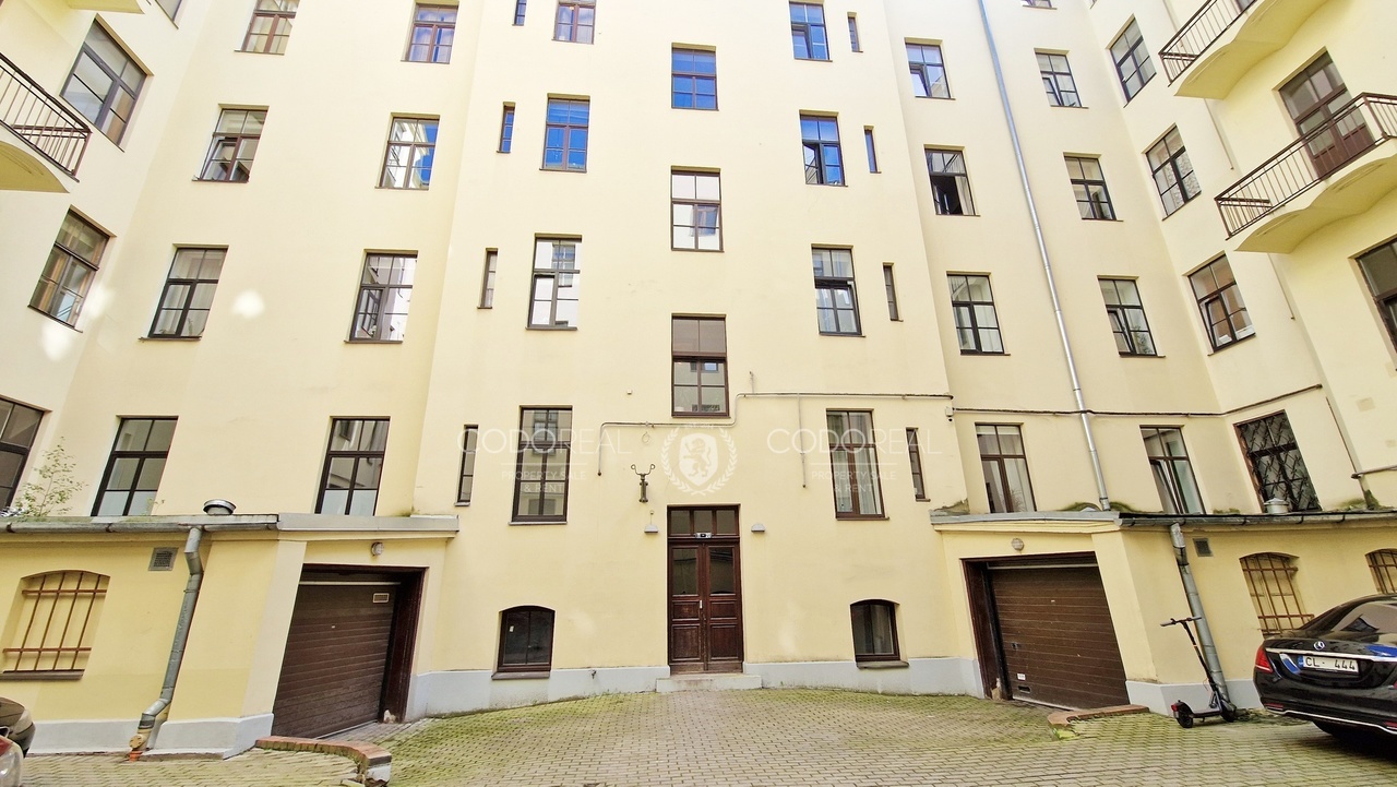 Dzīvoklis atrodas elegantā pagalma ēkā, augstajā beletāžas stāvā. Slēgtais pagalms nodrošina drošu un mierīgu vidi, apkārtējā infrastruktūra sniedz komfortu un visas pilsētas dzīves priekšrocības. Tuvumā ir respektabli restorāni un kafejnīcas, eleganti biroji un vairākas vēstniecības.