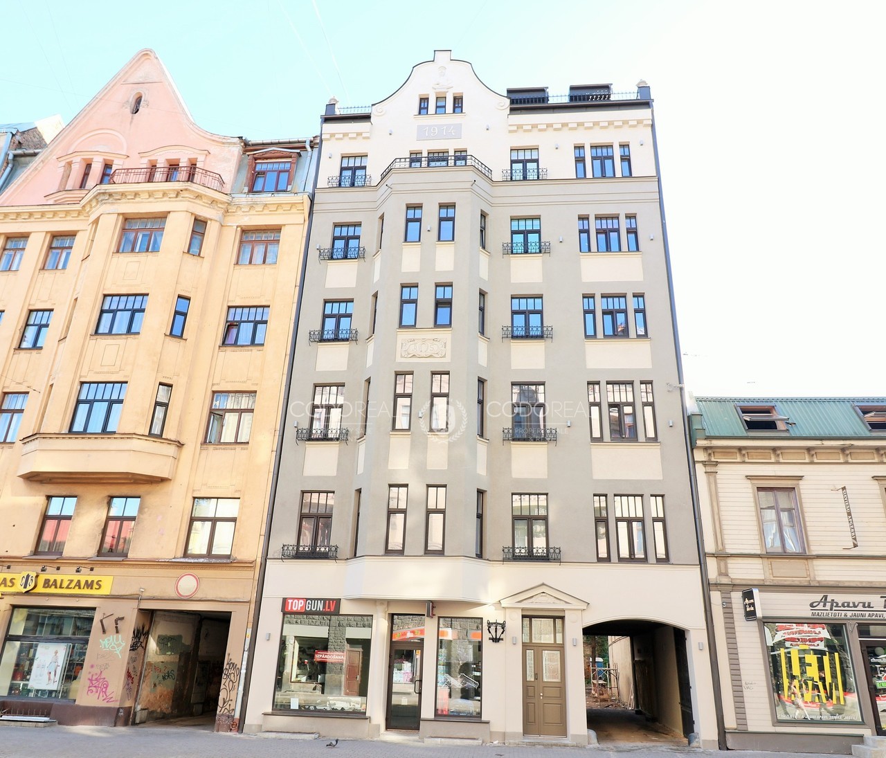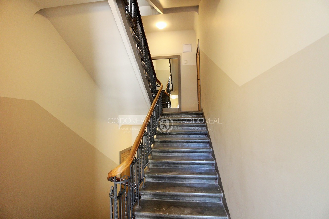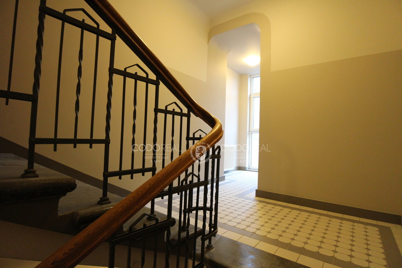 The building is fully renovated, with a new elevator, illuminated façade, and restored staircase.