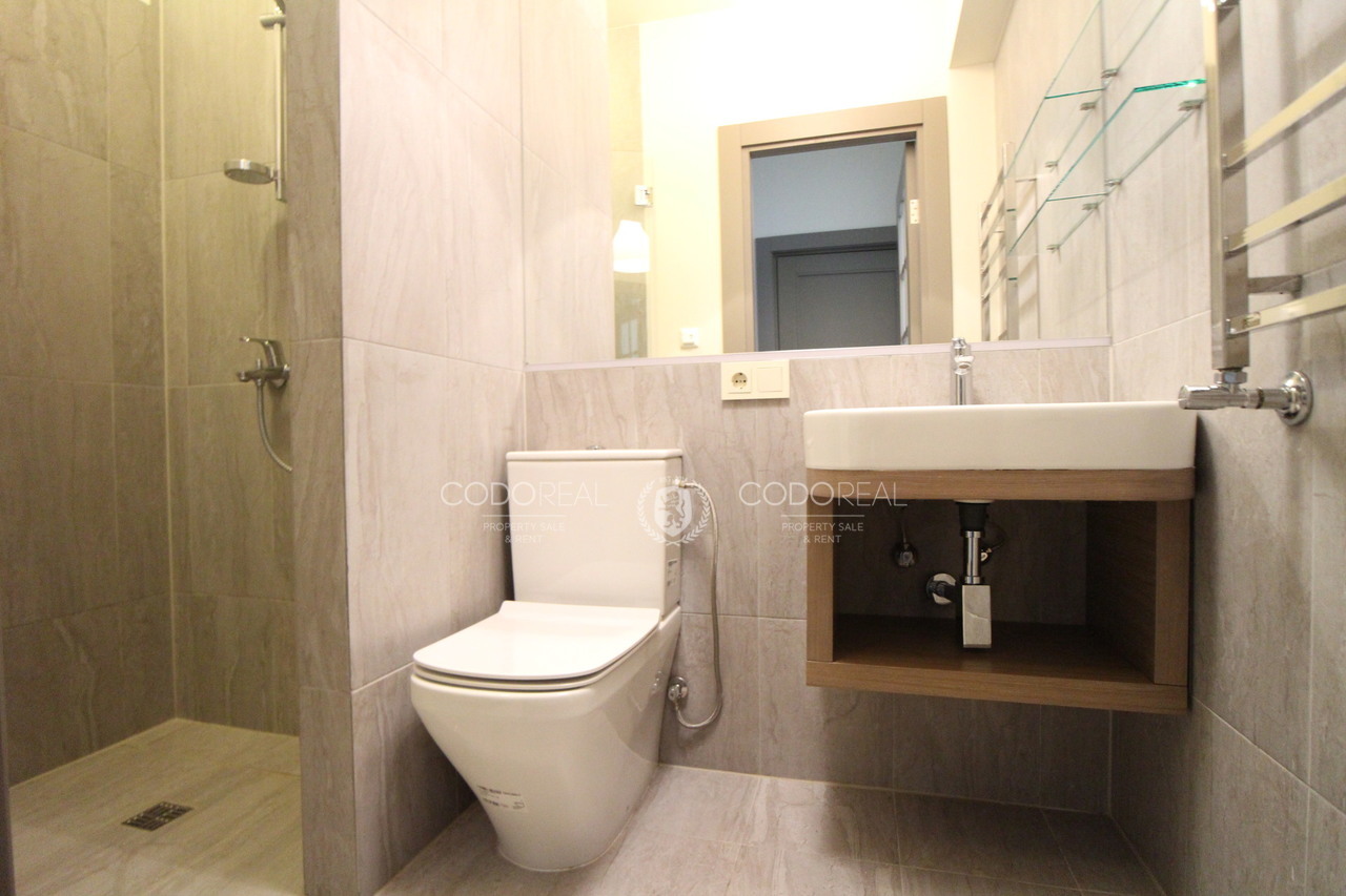 The apartment features high-quality finishes: