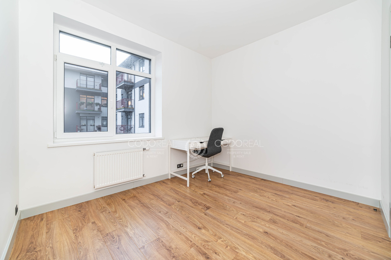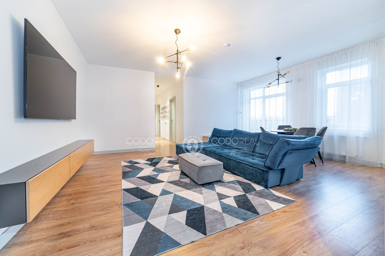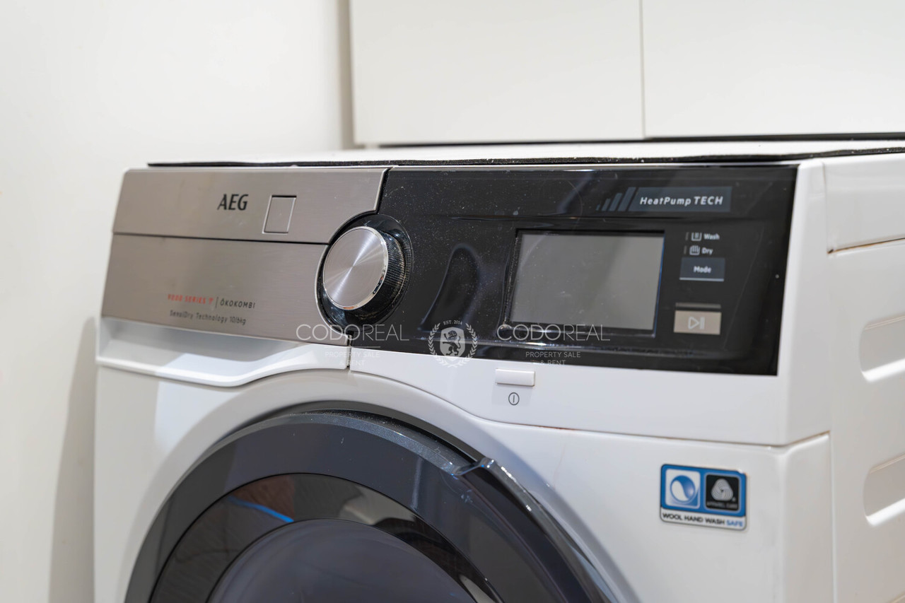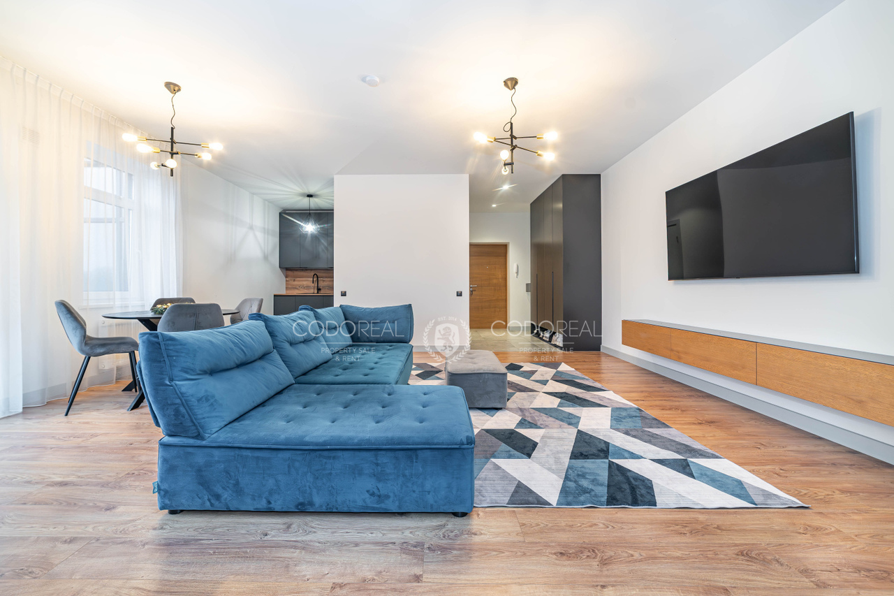 The apartment is sold with a built-in kitchen, wardrobes, lighting fixtures, and household appliances.