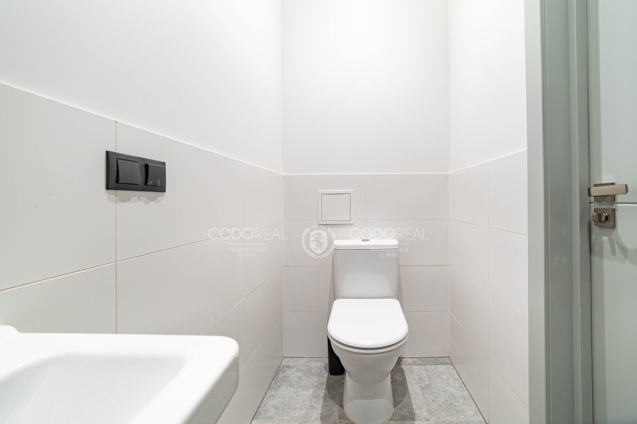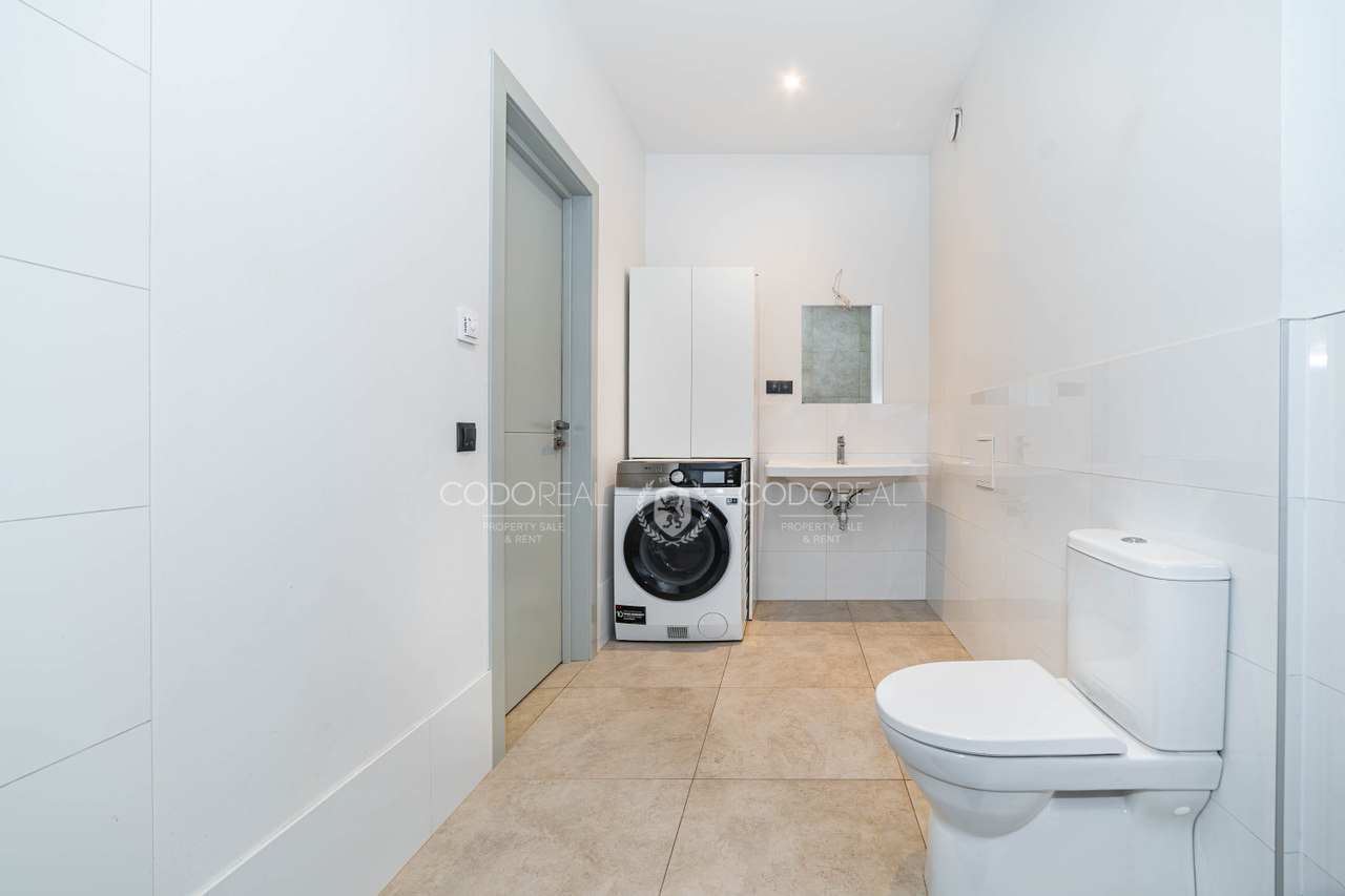Land is owned, 2 bathrooms (WC), 2 parking spaces, lockable storage room of 5.5 m² (registered in the Land Register).
