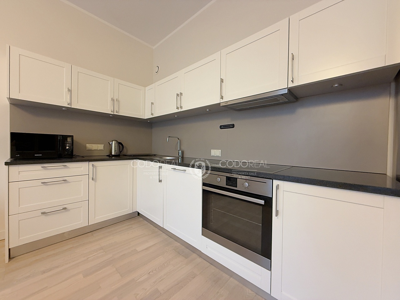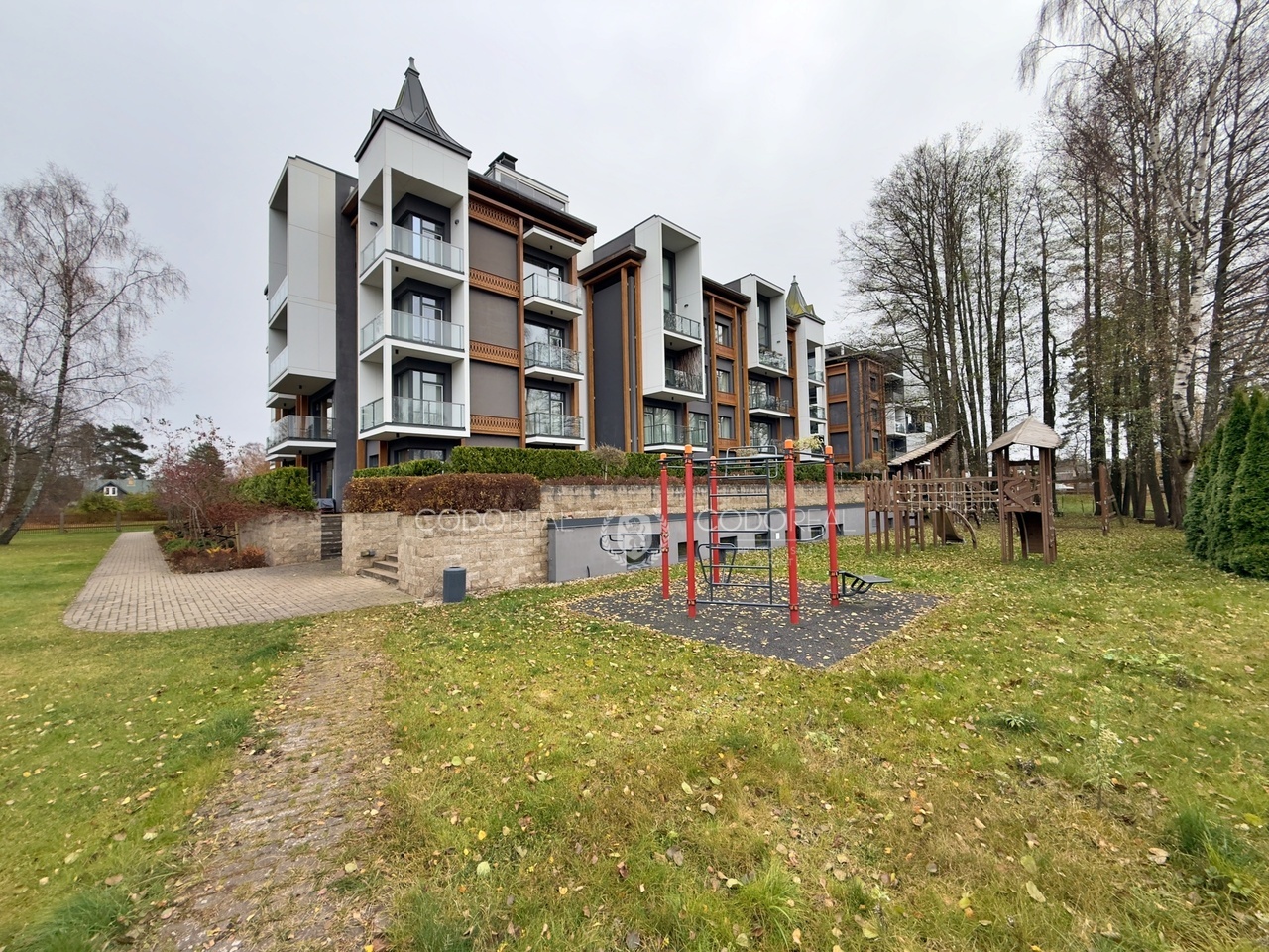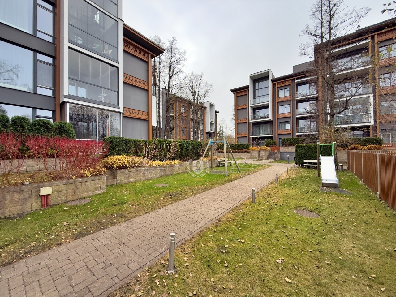 The modern residential complex Sky Garden is located in the quiet and desirable Asari area of Jūrmala. It is surrounded by a landscaped garden with a children’s playground, a pine forest, and the sea just a few minutes’ walk away.