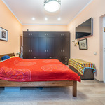 3 комнаты (2 изолированные). Кухня оборудована холодильником, электрической плитой и вытяжкой. Раздельный санузел. Ванная комната с душем. Установлен кондиционер. Горячая вода — бойлер.