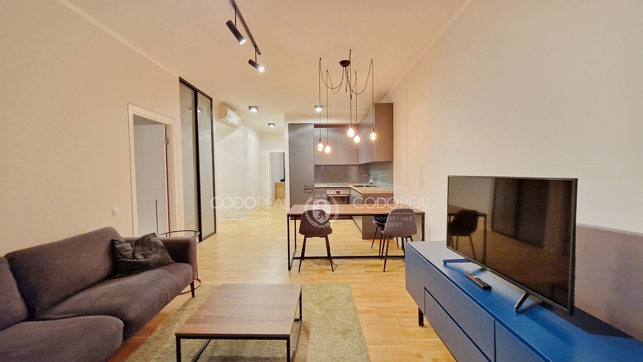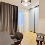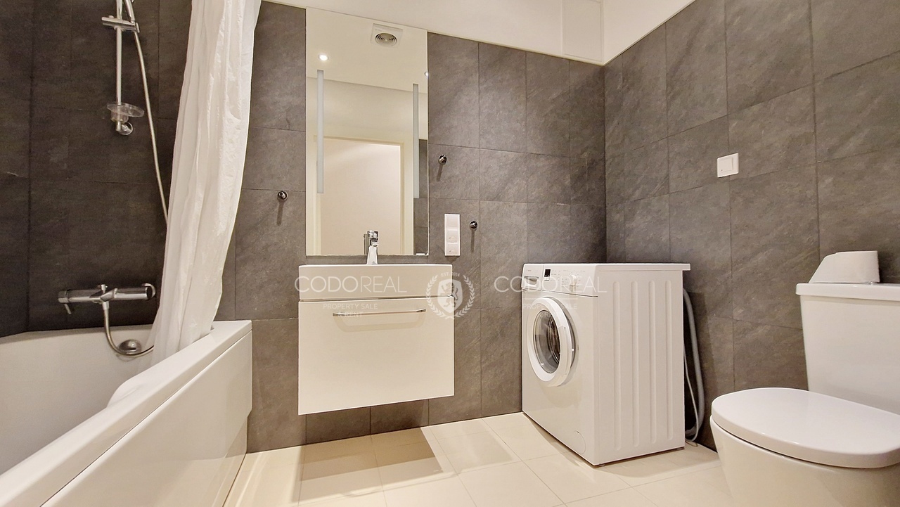 Квартира полностью меблирована, с встроенной кухней, бытовой техникой, встроенными шкафами в каждой комнате и энергоэффективными светильниками.