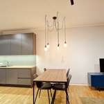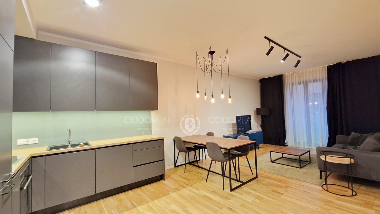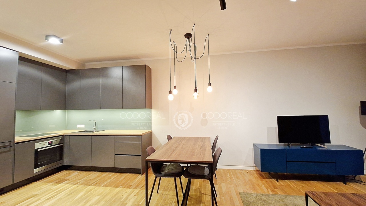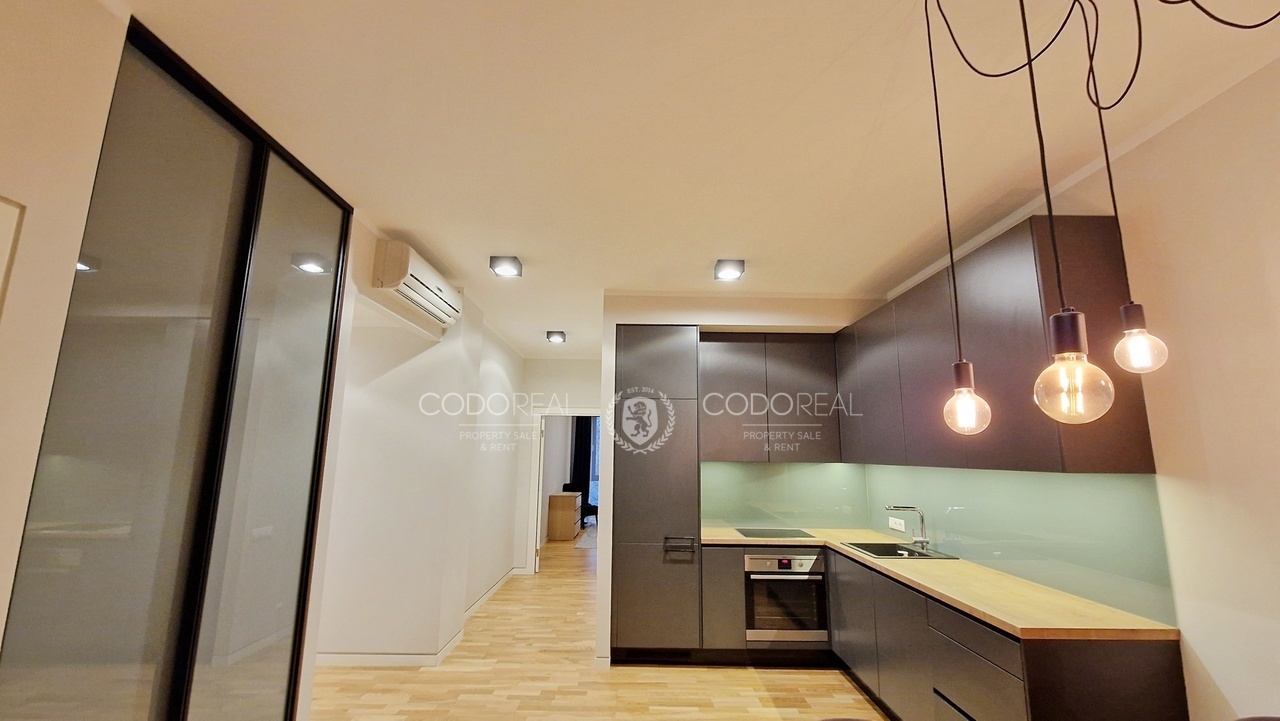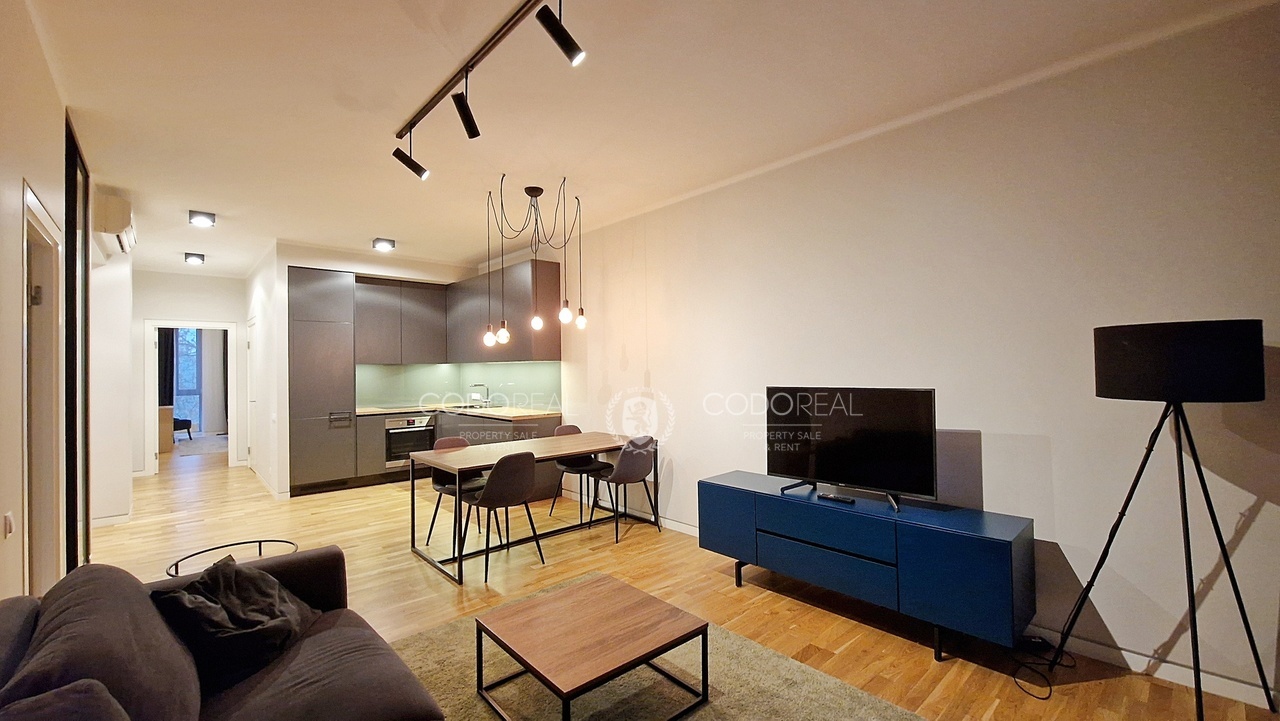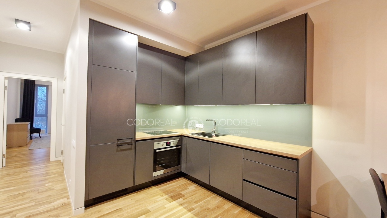 Квартира полностью меблирована, с встроенной кухней, бытовой техникой, встроенными шкафами в каждой комнате и энергоэффективными светильниками.