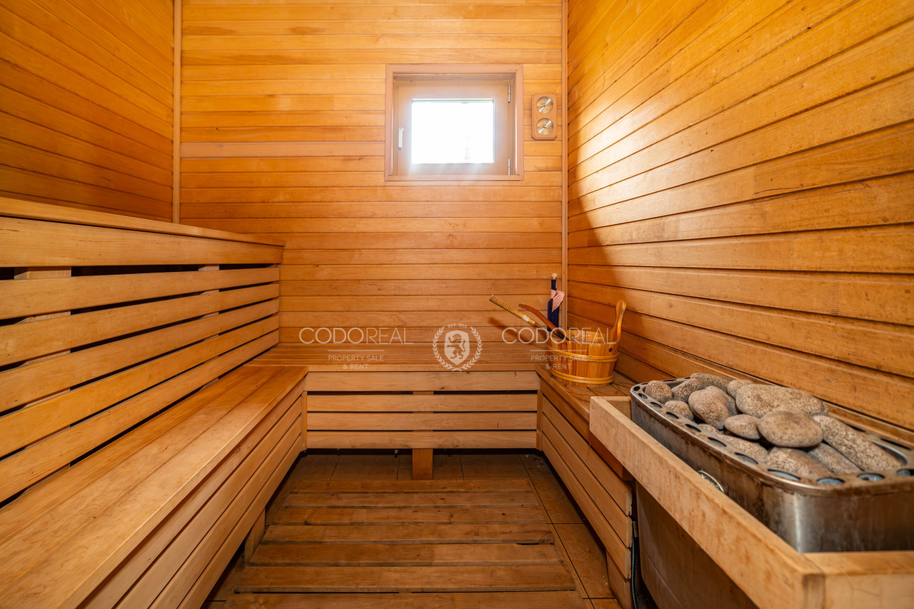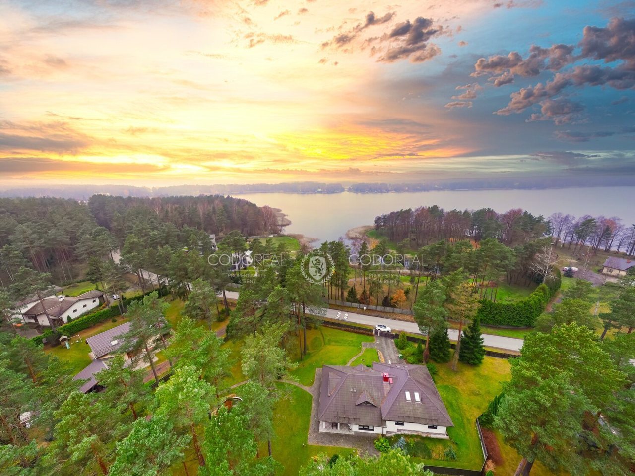 С террасы и великолепной беседки открывается захватывающий панорамный вид на озеро, а просторный участок украшен величественными соснами и ухоженным газоном.